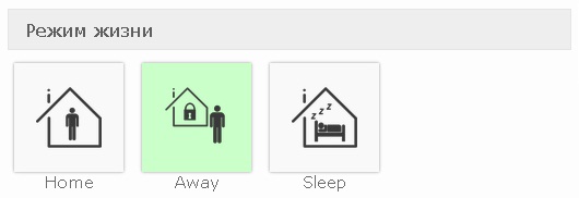 Chế độ cuộc sống (Lối sống) - mỗi quy tắc có thể được liên kết với một chế độ, sau đó nó sẽ chỉ được thực thi nếu hệ thống ở chế độ này. Tập hợp các chế độ trong hệ thống BeNext được cố định: Home, Away, Sleep. Chế độ hiện tại được chính người dùng chuyển đổi - ví dụ: rời khỏi nhà, bạn có thể bật chế độ Đi vắng và trước khi đi ngủ, hãy bật chế độ Ngủ.