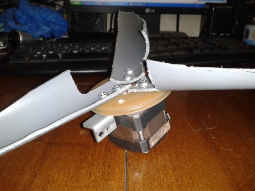 Trong ảnh, một máy phát từ động cơ bước với lưỡi dao được gắn.